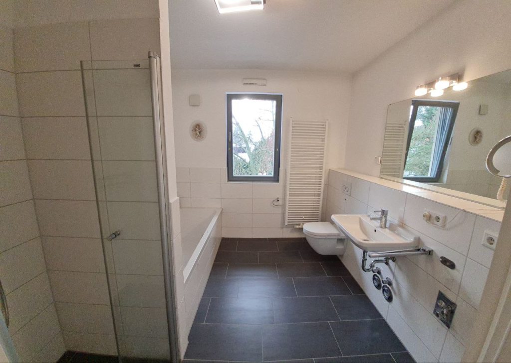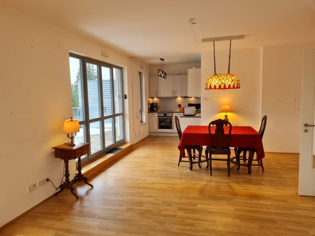 Dieses Exposé beschreibt eine exklusive Park-Villa Penthouse-Wohnung in Lichterfelde Süd in Berlin, perfekt für Senioren, Politiker, Regierungsangestellte, Lehrer und kleine Familien. Die Wohnung liegt in der 2. Etage und ist über einen Fahrstuhl sowie einen hellen Treppenflur zugänglich. Mit ca 91 Quadratmetern bietet sie einen optimalen Lebensraum für 2-3 Personen. Diese Penthouse-Wohnung in den Park-Villen Drei Marien bietet eine exklusive, komfortable und gut durchdachte Wohnlösung in einer attraktiven Lage Berlins, die vielfältige Bedürfnisse von verschiedenen Lebensstilen erfüllt. Der offene Wohn- und Küchenbereich ist großzügig und hell gestaltet und ausgestattet mit einem warmen Parkett in allen Räumen und teilweise bodentiefen Fensterelementen, die viel Tageslicht hereinlassen. Die 26 Quadratmeter große Penthouse-Terrasse ist überdacht und bietet Sichtschutz, perfekt für entspannte Momente im Freien. Sie eignet sich sogar für einen kleinen Gartenbereich. Die Wohnung verfügt über 1 Schlafzimmer, 1 Kinderzimmer und 1 Badezimmer mit hochwertiger Ausstattung wie einer bodengleichen Dusche, einer großen Badewanne und separaten Waschbecken. Im Bad sorgen angenehme Keramiken und ein anthrazitfarbener Steinboden für eine ansprechende Optik. Die moderne offene Küche in weiß gehalten, ergänzt durch graue Arbeitsflächen und hochwertige Marken-Einbaugeräte. Der Wohn- und Essbereich ist großzügig gestaltet und bietet viel Platz für geselliges Beisammensein. Ein kleiner Vorratsraum, ein abschließbarer Keller- und Fahrradraum sowie 2 Tiefgaragen-Einstellplätze, die mit dem Fahrstuhl erreichbar sind, bieten zusätzlichen Stauraum, Komfort und Sicherheit. Die Wohnung in der Park-Villenanlage DREI MARIEN wurde erst 2015 fertiggestellt. Somit ist bis auf Weiteres kein größerer Sanierungsbedarf zu erwarten. Alle Räumlichkeiten verfügen über moderne, schallgeschützte thermisch sehr gut isolierte Fenster.